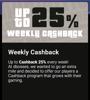 Additionally, we give a cashback up to 25% on a weekly basis to our players.